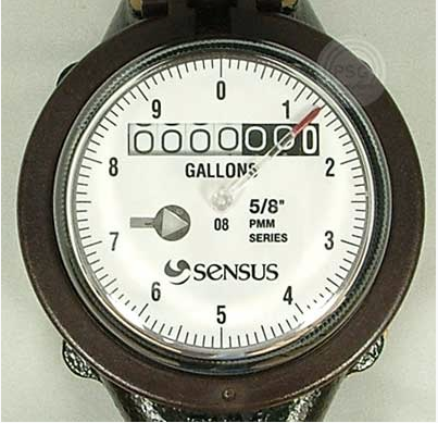 STEP 2 Once you open the meter box lid, lift the protective cap on the meter. On the face of the meter, there is a large dial and a display of numbers. For the residential meter, each rotation of the dial measures 100 gallons. Read the number display from left to right. Be sure to include the stationary zero. This is your meter reading. Meters measure water in gallons. Charges for the amount of water consumed are rounded to the nearest thousand gallons used during a billing period. Compare that reading to what your bill states as your current or present reading.